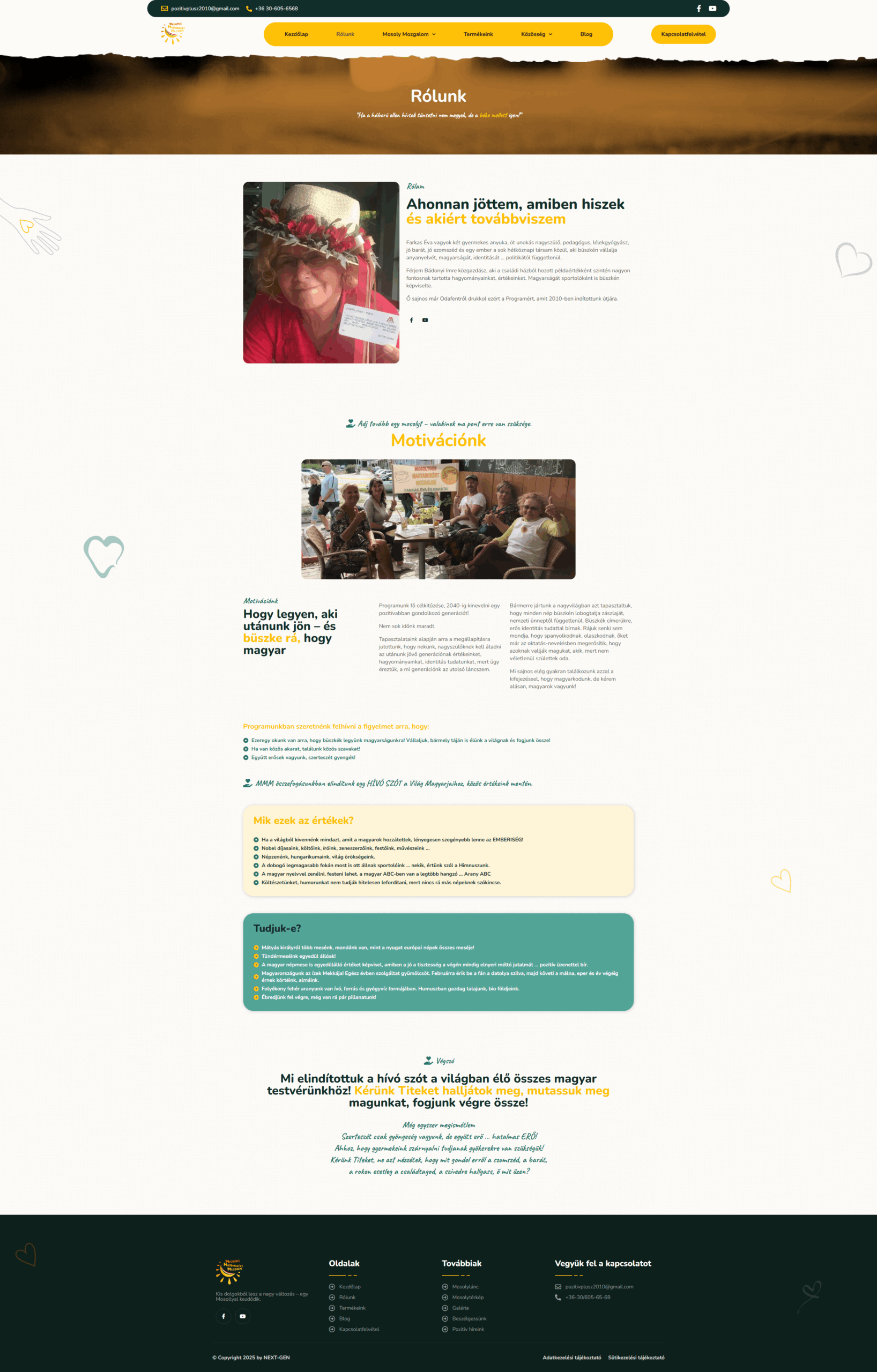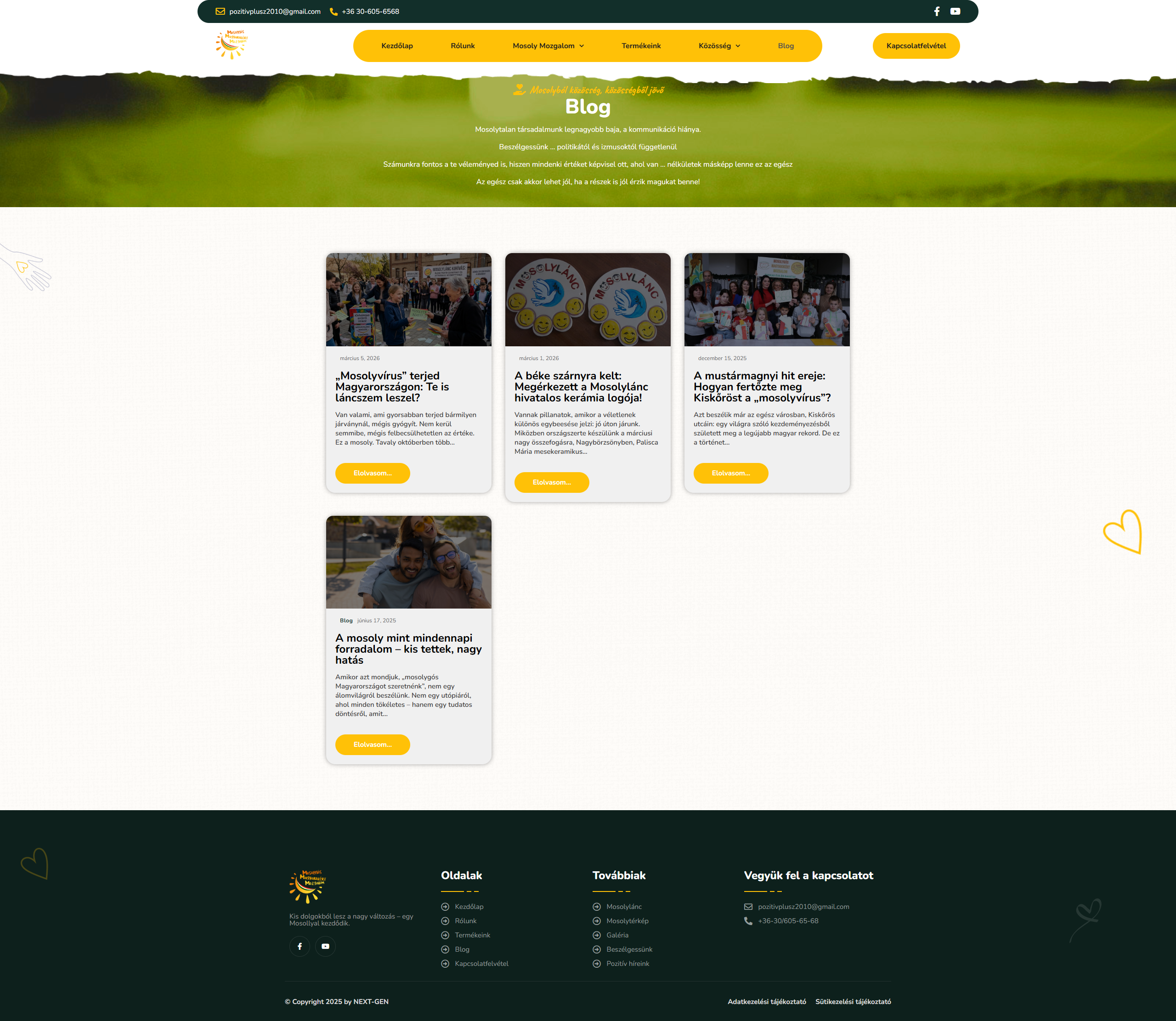 „Hálásak vagyunk a Next-Gen csapatának, hogy meglátták a fantáziát a mozgalmunkban. A kedvezményes ár és a profi hozzáállás lehetővé tette, hogy olyan weboldalunk legyen, amire büszkék lehetünk. A folyamatos karbantartás pedig biztonságot ad nekünk a mindennapokban.”A Mosolygós Magyarokért Mozgalom alapítója